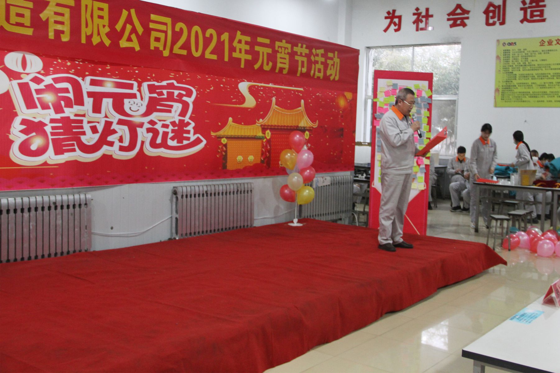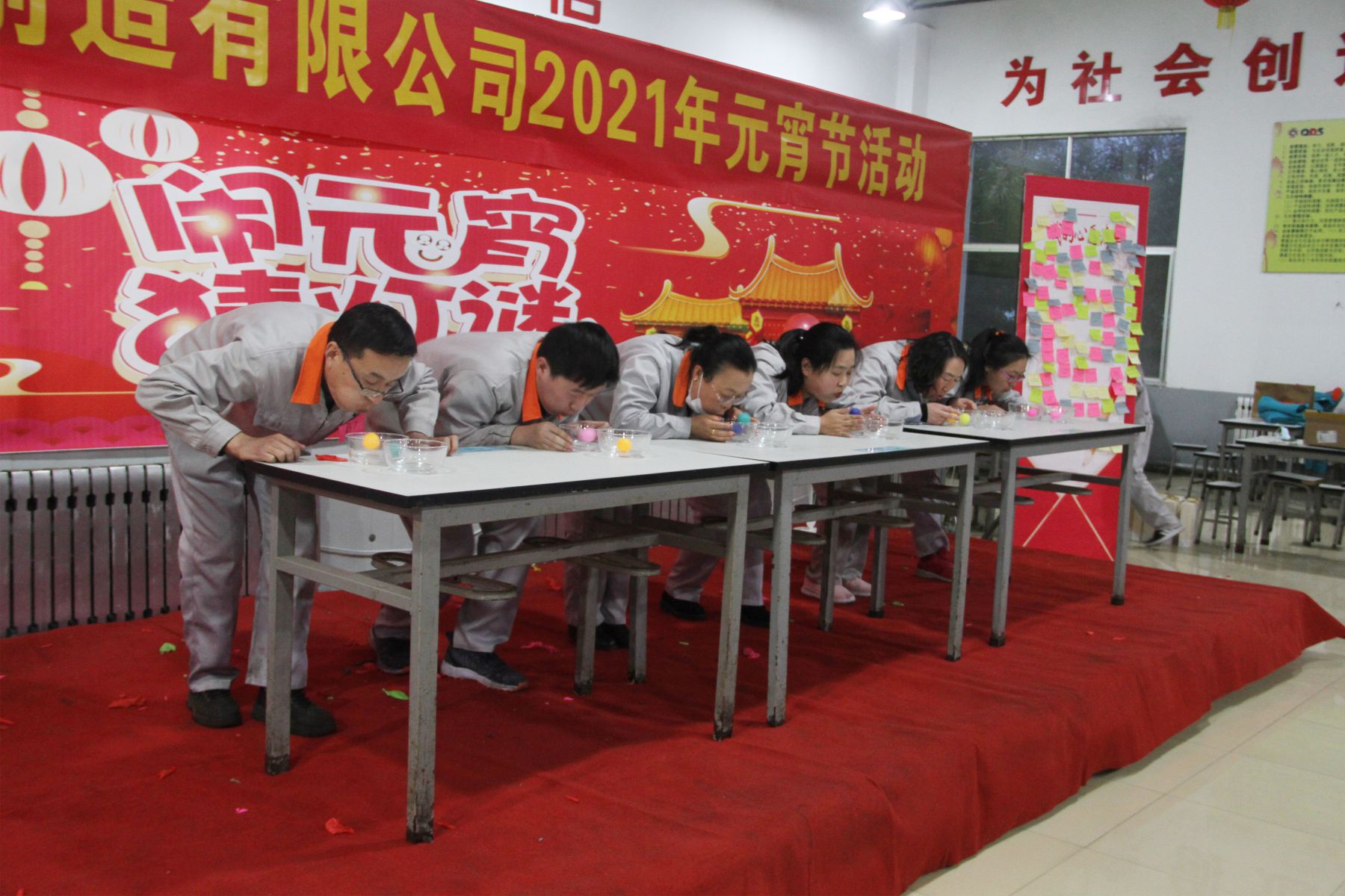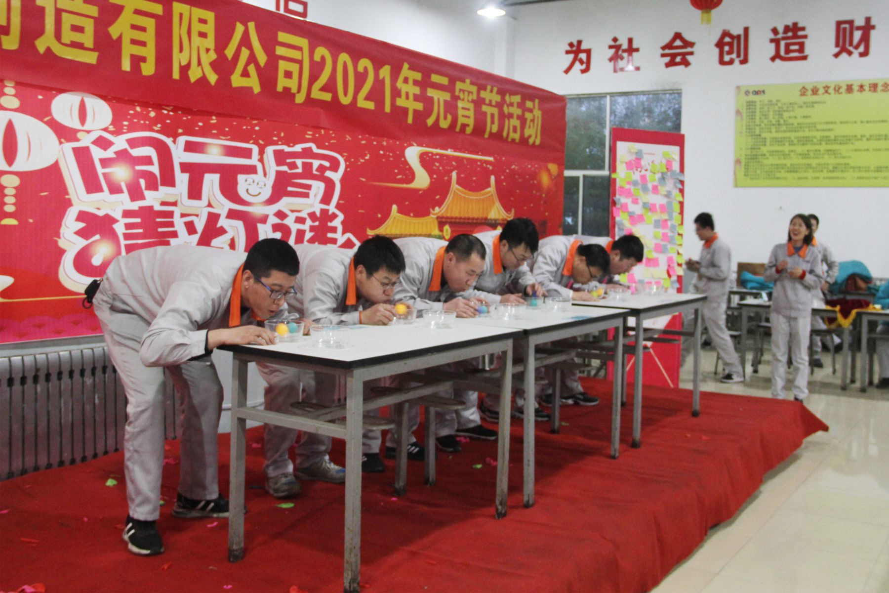 為弘揚中國傳統(tǒng)元宵節(jié)文化,豐富全體員工文娛生活,營造新春佳節(jié)喜慶、祥和的節(jié)日氛圍,增強員工團結、向上、積極的工作精神,促進生產(chǎn)經(jīng)營工作良好發(fā)展。2月25日晚17:20,由公司團委牽頭組織的2021年度“猜燈謎、慶元宵”聯(lián)歡晚會在員工餐廳隆重舉行。